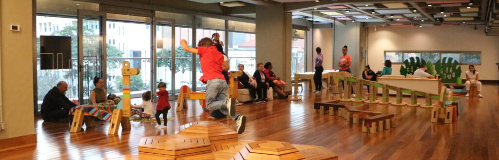 Neste andar funciona o Espaço de Brincar, um ambiente lúdico e educativo pensado para crianças de 0 a 6 anos, acompanhadas de suas pessoas de referência, que convida a conviver, descobrir, sentir, experimentar e criar, por meio do livre brincar. Os brinquedos têm inspiração nas tecnologias contemporâneas e da natureza e a ambientação é montada pela equipe de educadoras(es) do Sesc.