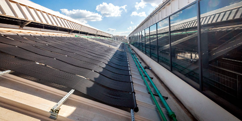 Na cobertura da Unidade, há 60 mantas solares para atendimento da cozinha, vestiários e piscinas.