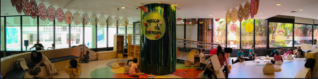 Espaço localizado no Mezanino, destinado para crianças de 0 a 6 anos com sua pessoa adulta de referência. O local é um convite para deixar de lado outras urgências, evitar se distrair com celular e aproveitar este cantinho para brincar, estar junto e se fazer presente.