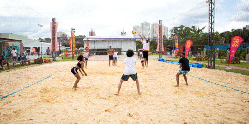 Uma quadra de areia montada pelo Sesc Carmo e o Sesc Florêncio de Abreu, em pleno Vale do Anhangabaú, no centro de São Paulo para curtir, jogar, experimentar e vivenciar esportes e atividades físicas.