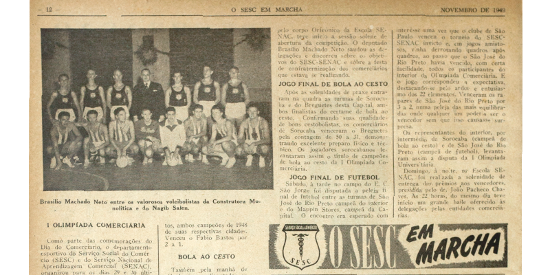 Disputados em 1949, os primeiros Jogos Comerciários reuniram 185 atletas amadores em partidas de basquete e voleibol. No mesmo ano ocorreu a 1ª Olimpíada do Comerciário que, com partidas de futebol de campo e de basquete, aglutinou 213 participantes.