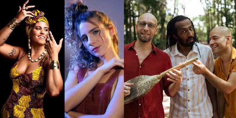 O trio João Oliveira, Jota Erre e Kabé Pinheiro se apresentam ao lado da cantora angolana Jéssica Areias e da cantora catalã Maria Tuset em um show essencialmente plural em sua sonoridade, com composições que acolhem e suscitam reflexões importantes sobre ancestralidade e diversidade cultural.