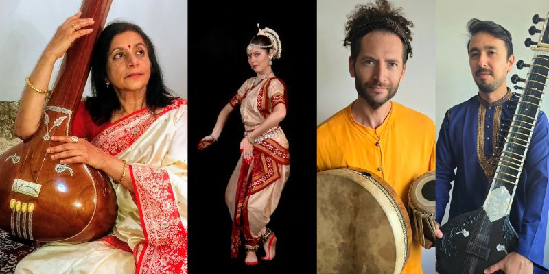 Repertório clássico e popular da música indiana com instrumentos tradicionais, como Harmonium, Sitar e Tabla. Presença da dançarina Andréa Prior com estilo de dança clássica Odissi.