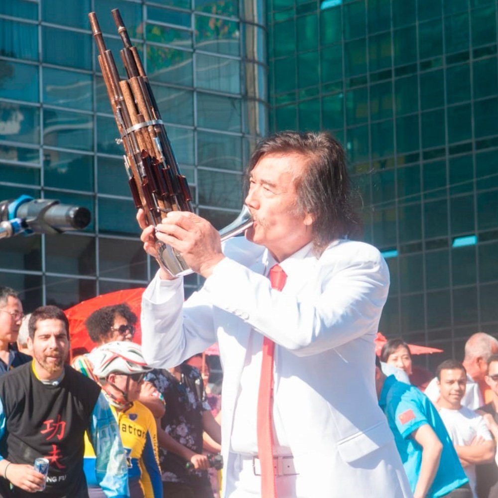 Apresentação de música tradicional chinesa, com destaque para o sheng, instrumento tocado pelo músico e ator Tony Lee.