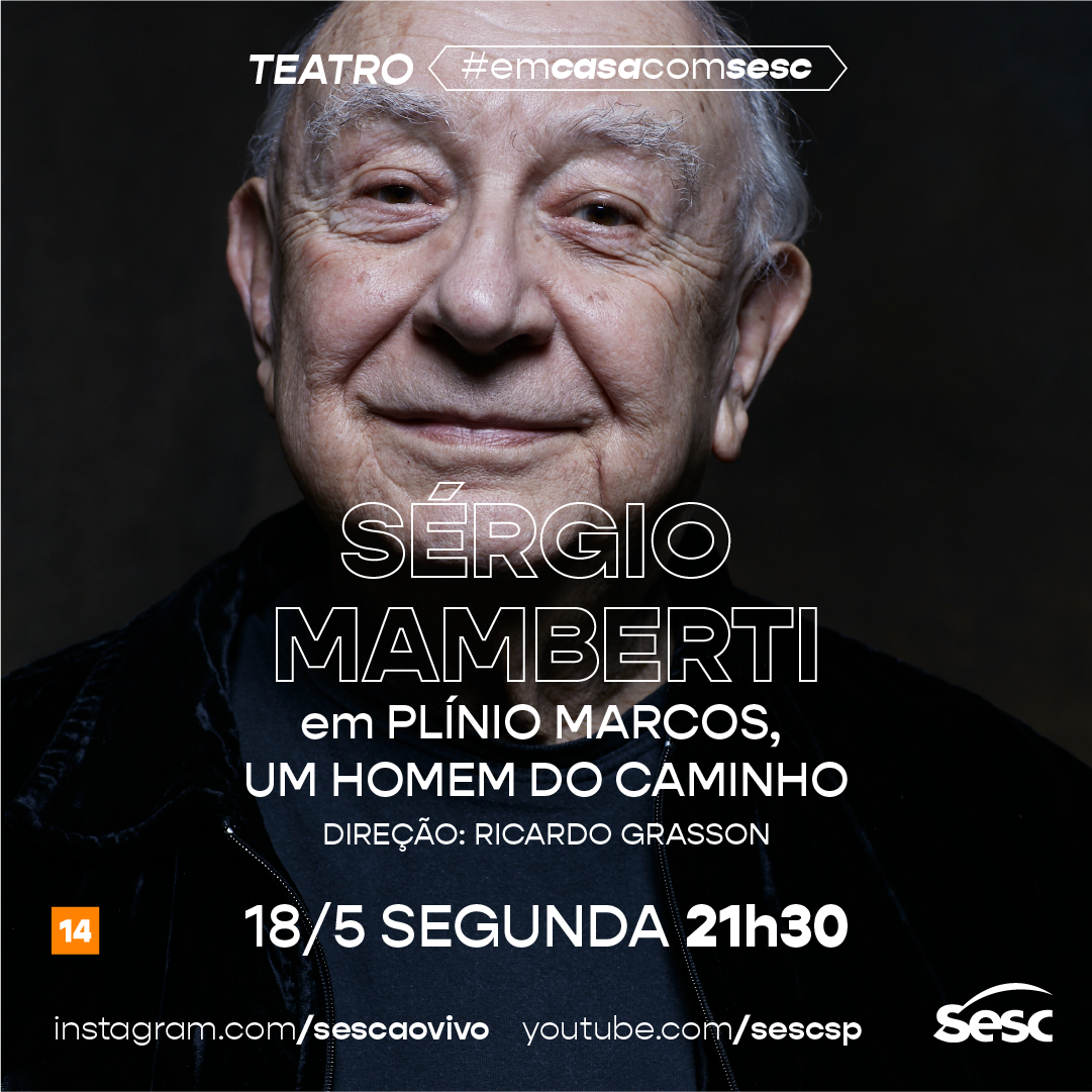 Todas as segundas, quartas, sextas e domingos, às 21h30, você tem encontro marcado no Youtube do Sesc SP com diversos atores do teatro brasileiro, que apresentarão diretamente de suas casas, textos clássicos e contemporâneos, em monólogos especialmente adaptados para o meio digital. As apresentações terão duração de até 50 minutos. Em tom intimista, os artistas também são convidados a fazerem comentários sobre o trabalho após a performance.