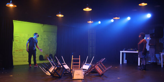 Apossinarmológisi é uma peça… não. É a memória de uma peça que… não. É a busca de uma obra em conjunto… não. É sobre a expectativa da peça que poderíamos fazer, aquela impossível de ser montada. Parte do processo de construção do espetáculo foi realizada no Centro de Produção Teatral, no Sesc Consolação. A dramaturgia é de Assis Benevenuto e Giordano Castro e a direção coletiva dos grupos Magiluth e Quatroloscinco.