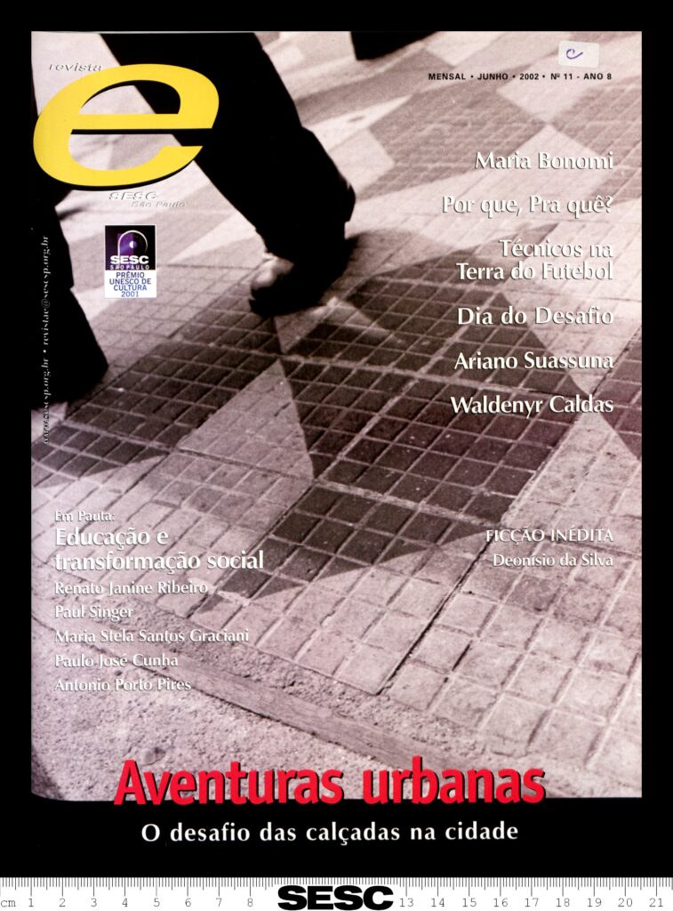 Ao ocupar intencionalmente esse lugar mediador – concepção que vai ao encontro da ação educativa do Sesc –, a Revista E cumpre, inclusive, o propósito do nome que recebeu ao ser criada. Afinal, este “E” é a conjunção aditiva que conecta o Sesc São Paulo ao seu público; os leitores às artes; o erudito ao popular; as diferentes gerações; a cidade aos seus cidadãos.