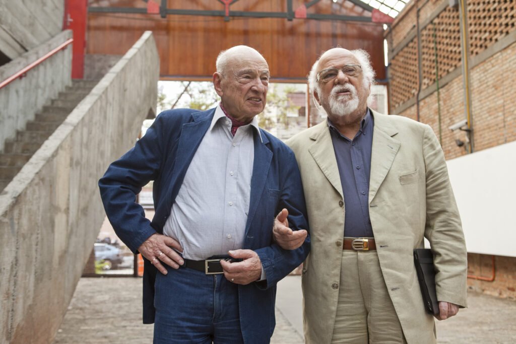 Lado a lado do amigo, o filósofo Edgar Morin, durante o lançamento da coleção Diários de Edgar Morin (Edições Sesc São Paulo, 2012), no Sesc Pompeia, em 2012. Alexandre Nunis