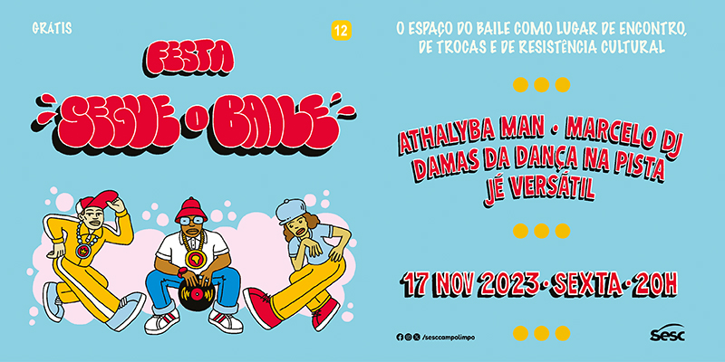 Segue o Baile, chega à 4a edição: uma festa que, desde sua origem, é lugar de encontros, trocas e resistência cultural, e recebe uma referência para a história do Hip-Hop nacional: Athalyba-Man, ex-integrante do Região Abissal, grupo que marcou época ao lançar Hip Rap Hop (1988), primeiro álbum completo de rap lançado no Brasil. Junto com Marcelo DJ, Damas da Dança e Jé Versátil, às 20 horas da sexta, 17 de novembro, eles se reunirão para celebrar o melhor do espírito dos Bailes Black. A entrada é gratuita e não há retirada de ingressos.