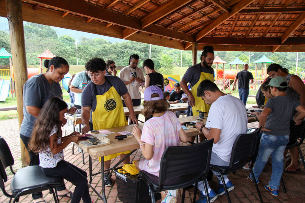 O “Ateliê serigráfico: árvores paulistas” realizado pelo grupo Quiosco Cultural, propõe uma atividade que permite ao público explorar a técnica da serigrafia e imprimir sua própria gravura.