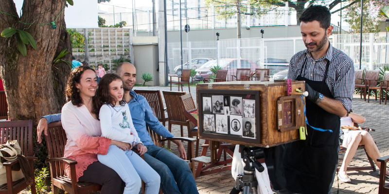 Nos dias 12, 13, 15, 19 e 20/11, é a vez da oficina “De olho no Museu: fotografia pinhole“, com Cidade Invertida, integrar a programação. Um grupo de pesquisadores de processos fotográficos vêm ao Museu do Ipiranga registrar o movimento e “vistas” da edificação, reconstituindo de forma experimental algumas técnicas de captura e impressão fotográfica: lambe-lambe, colódio, pinhole e goma bicromatada.