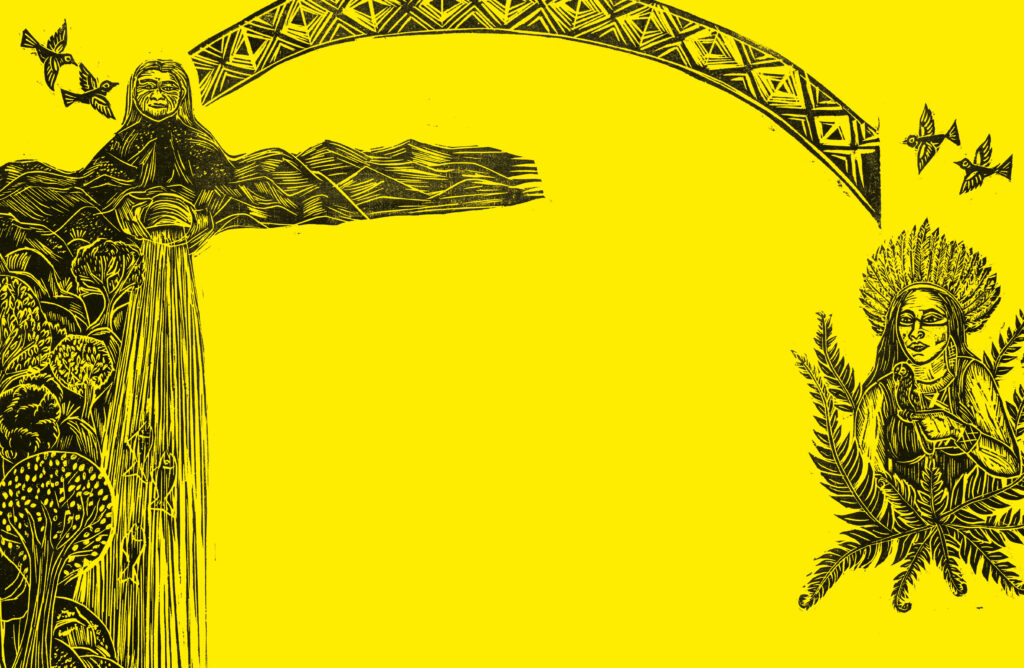Lucélia Borges é xilogravadora, contadora de histórias, terapeuta holística e pesquisadora da cultura popular brasileira. Mestre em estudos culturais pela USP, ilustrou vários folhetos de cordel e livros, como A Jornada Heroica de Maria (2019) e Contos Encantados do Brasil (2022), de Marco Haurélio, ambos premiados com o selo Cátedra Unesco (PUC-Rio).