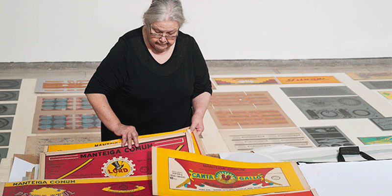 “Preparar a mostra foi como um grande laboratório em que pude revisar, sob novas perspectivas, todo esse material que reuni. Foram muitos ensaios, com o objetivo de criar conexões e diálogos com as ilustrações dos nossos queridos desenhistas da litografia industrial presentes nas matrizes. Realizei testes durante meses, usando, entre outros insumos, originais em zinco de latas de manteiga, banha, fumo de rolo e biscoito”, explica a artista mineira, ganhadora do Prêmio Itamaraty na décima Bienal de São Paulo, em 1969. “Sempre penso em não me repetir. Para mim, cada exposição é como lançar um livro.”
