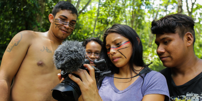 Quando a jovem Samela Sateré Mawé, da Terra Indígena Andirá-Marau, no Baixo Rio Amazonas (AM), começou a criar conteúdo para as redes sociais, foi pelo perfil do coletivo Artesanato Sateré Mawé no Instagram (@amism_sateremawe), que divulga o trabalho feito pela Associação de Mulheres Indígenas Sateré Mawé. Enquanto postava informações sobre as peças criadas com sementes da floresta – arte circulada de geração em geração –, Samela teve, em 2018, a oportunidade de participar da oficina Jovens Cidadãos da Amazônia, realizada pela agência de jornalismo independente e investigativo Amazônia Real, criada pelas jornalistas Kátia Brasil e Elaíze Farias. Desde então, a jovem faz parte de um levante de comunicadores indígenas que produzem, a partir de seus territórios, reportagens, fotografias, vídeos e podcasts compartilhados na internet.