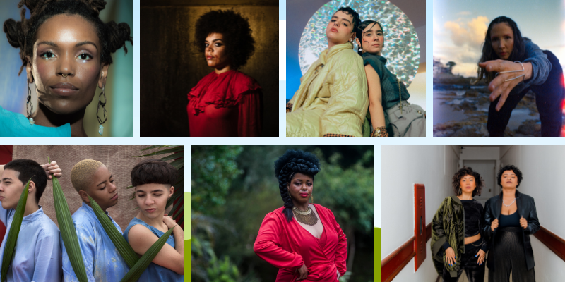 A dupla Anna Suav & Bruna BG une dois dos principais nomes do atual cenário do hip-hop no Norte do país: MC, poeta, cantora e compositora, Anna Suav nasceu em Manaus (AM) e fortalece a cena de Belém (PA) desde 2017, quando co-criou o projeto “Slam Dandaras do Norte” (2017-2019). Em 2021, ela lançou seu primeiro EP solo, “Eva Grão”, que inclui os singles “BNTA” e “Hino”. Em suas composições, Anna reforça questões de representatividade feminina e negra e os processos de invisibilidade do Norte do país. Já Bruna BG é rapper, musicista e compositora de Breves (PA), e está na cena do hip-hop desde 2016, quando fundou o grupo Clã do Norte, mandando versos sobre realidades periféricas, violências e superações. No último ano, também lançou seu primeiro EP solo, homônimo, reunindo cinco faixas.