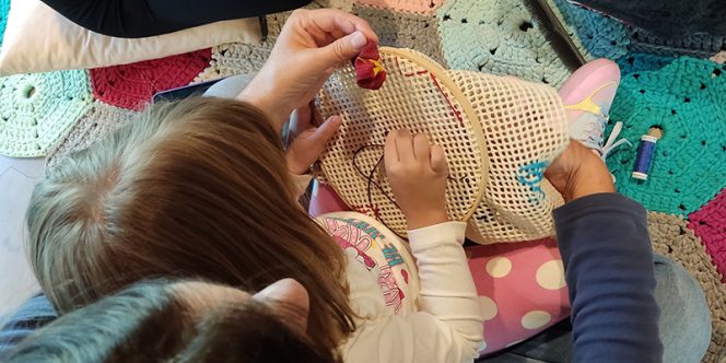 Ação de conexão entre crianças e adultos por meio da experimentação de manualidades como costura, bordado, crochê e outras. De forma divertida, os participantes conhecem os elementos que compõem criações diversas do universo do artesanato em uma roda de partilha, conversas e criação de vínculos entre crianças e cuidadores.
