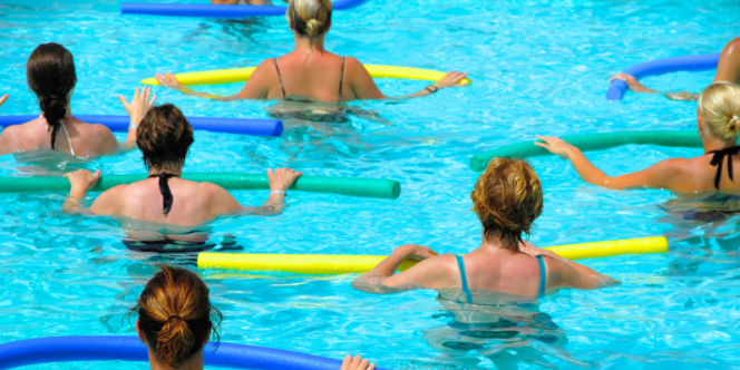 Atividade em grupo que utiliza a água como resistência aos movimentos. Os exercícios estimulam o desenvolvimento da força, da capacidade cardiorrespiratória e a autonomia no meio aquático.
