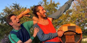 Espetáculo interativo para crianças inspirado no conceito da jornada do herói do escritor e mitologista Joseph Campbell e nas brincadeiras de pular elástico e cama de gato.
