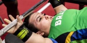 Vivência de Halterofilismo Paralímpico, em que os atletas executam um movimento chamado supino, deitados em um banco.