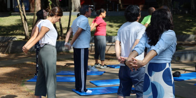 Aulas de Práticas Corporais que utilizam diversas técnicas corpóreas orientais e ocidentais, com movimentos que trabalham força, flexibilidade, ritmo, respiração, concentração, e que colaboram para o autoconhecimento. Diversas linguagens das práticas corporais como yoga, meditação, chi Kung, técnicas de respiração, relaxamento, tai chi chuan e dança, estão no repertório das aulas no Quintal Zen. Uma experiência corporal para o autoconhecimento por meio dessas práticas.