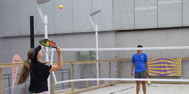 Esta atividade apresenta as regras do Beach Tennis e incentiva os participantes a praticá-lo. O objetivo de cada jogador é devolver a bola recebida, sem tocar no chão, com apenas uma raquetada para o campo adversário.