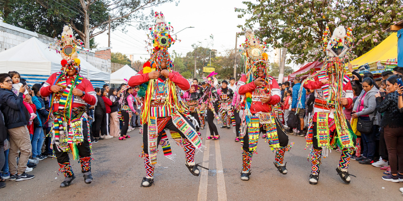 LATINOAMÉRICA VIVA – Nome de uma flor que cresce no planalto da Cordilheira dos Andes e que tem as cores da bandeira da Bolívia, a palavra kantuta também batiza, desde 2001, uma feira que acontece aos domingos, na zona norte de São Paulo. Expositores bolivianos (principalmente de La Paz e Cochabamba) e peruanos oferecem, em 40 barracas, diversas opções de gastronomia, artesanato, roupas, acessórios, souvenirs e até cortes de cabelo. Entre as comidas, fazem sucesso o anticucho (coração de boi no espeto), ceviche, peixe na parrilla, pollada (frango assado com batata), saltenhas (empanadas) e sopas. Para beber, o público encontra sucos como o mocochinchi (à base de pêssego) e a chicha morada (de milho roxo), além de cervejas e refrigerantes locais. As crianças podem se divertir em infláveis gigantes e, para movimentar a festa, a Feira Kantuta realiza apresentações folclóricas de músicas e danças típicas. Grupos de morenada, tinku e salay, devidamente trajados, contornam a praça em cortejos. Segundo a vice-presidente da feira, a peruana Cecilia Lumbreras, essa é a primeira diretoria comandada exclusivamente por mulheres. “Queremos humanizar e revitalizar a Kantuta após a pandemia. Lutamos para preservar nossas raízes, costumes e o trabalho feminino”, destaca.
