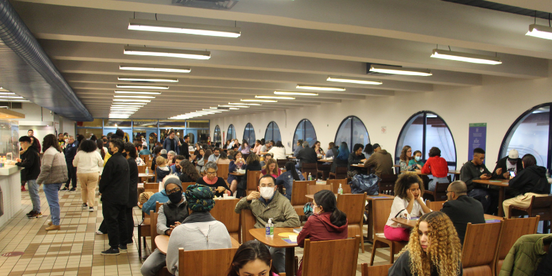 Localizado no térreo, a Cafeteria oferece bebidas quentes e frias, salgados, saladas, sopas, sanduíches, frutas e doces.