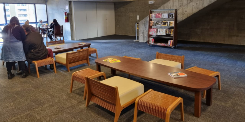 O Espaço de Convivência da Unidade fica localizado no Mezanino do Foyer do Teatro. No local, estão disponíveis mesas e cadeiras para uso de computador pessoal e outros equipamentos eletrônicos, com acesso à tomadas e internet wi-fi. Também são disponibilizados livros e revistas para leitura no local.