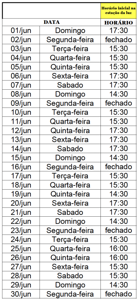 Confira os horários de início da circulação do transporte, a partir da Estação da Luz: