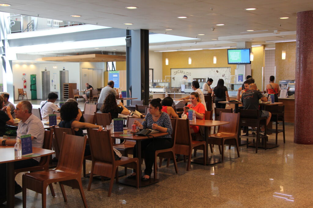 A capacidade nas mesas da Comedoria é de 93 lugares, sendo 2 destinados para cadeirantes.