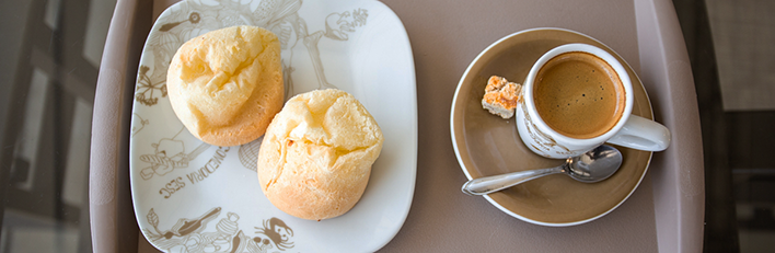 Localizada na Tenda de Convivência, a Cafeteria oferece bebidas quentes e frias, salgados, doces e frutas.