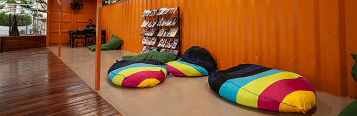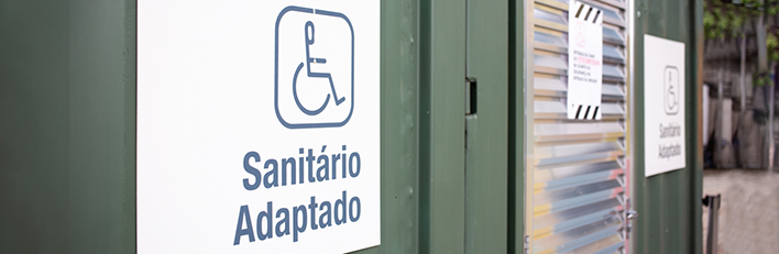 A estrutura arquitetônica provisória do Sesc Campo Limpo possui característica horizontal e conta com acesso por meio de rampas e sanitários adaptados para cadeirantes.