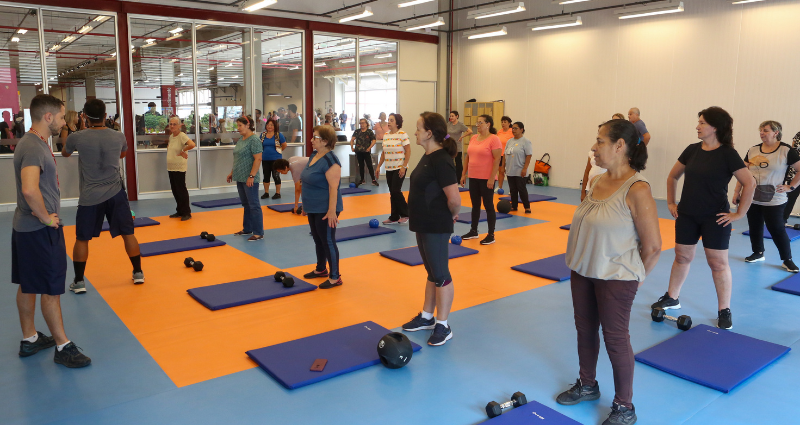 Local reservado a práticas físico-esportivas e corporais, como aulas de yoga e alongamento e treinos coletivos de Ginástica Multifuncional.
