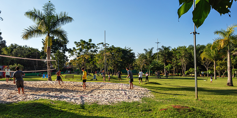 A dinâmica do espaço e a variedade de equipamentos e implementos consideram aspectos como sociabilização e autonomia. É um local indicado para jovens a partir de 12 anos, adultos e idosos.