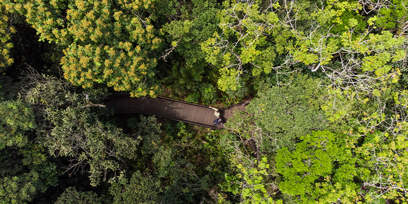 Acessibilidade é um dos princípios da Reserva Natural Sesc Bertioga. Os seus espaços foram planejados e implantados considerando a arquitetura com desenho universal¹, para receber pessoas com e sem deficiência. As estruturas de acesso à floresta também estão entre as múltiplas dimensões presentes no conceito de acessibilidade: física, cultural, atitudinal e comunicacional.