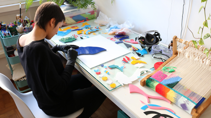 Naíma Almeida em seu estúdio produzindo da identidade visual de As Mulheres e as Tecnologias | Foto: Danny Abensur