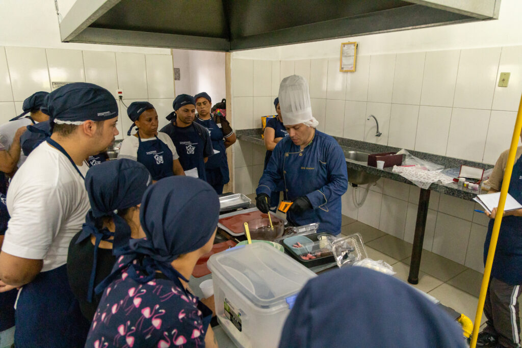 Realizado em 3 módulos – Boas Práticas de Fabricação, Culinária e Empreendedorismo – o curso incluiu aulas teóricas e práticas, distribuídas em 49 horas e em 14 encontros. O início foi marcado com um momento de escuta, no qual os participantes contaram as suas expectativas, quais preparações tinham mais interesse em aprender e as suas experiências prévias com a área de alimentação. A partir desse ponto de partida, os temas das aulas de culinária foram definidos.