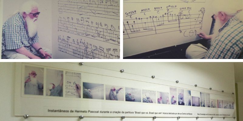 O Centro de Música do Sesc Consolação guarda uma memória importante para a formação e o contato de seus alunos com a música. Além disso, muitos nomes da música brasileira já estiveram por aqui, como o compositor arranjador e multi-instrumentista brasileiro Hermeto Pascoal, que, em 05 de maio de 2002, apresentou o workshop “Hermetismo Pascoais” em nosso espaço. Na atividade ele criou durante o evento uma partitura, a “Brasil que vai, Brasil que vem”, e dedicou ao Centro de Música do Sesc Consolação. Portanto, todas as vezes que você entrar no Centro de Música, é possível ver na parede esse registro eternizado.