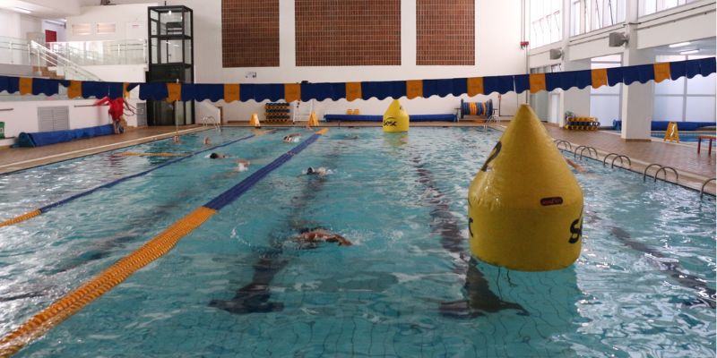 Por questão de segurança e organização, especialmente quando temos muitas pessoas na piscina, permitimos apenas o uso dos seguintes materiais: luvas de neoprene, flutuadores, prancha e colete salva vidas (para crianças).